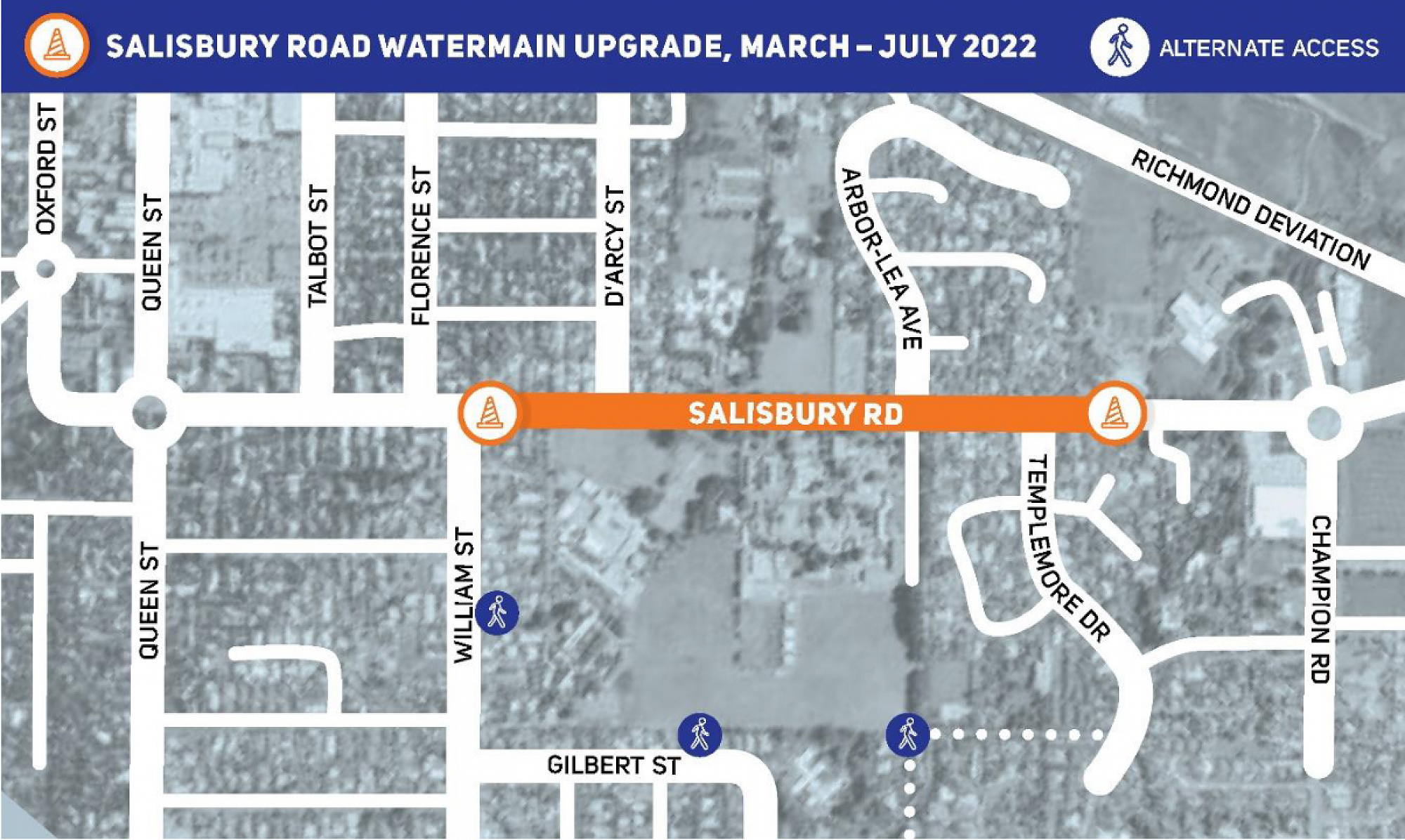 Roadworks will begin on 7th March through to July 2022 to upgrade the watermain along Salisbury Road.