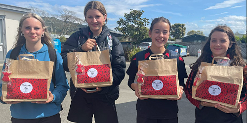 Last Thursday, 26 October, 4 students, delivered five Manaaki Kai food parcels. Two were delivered to Jackie from ‘Giving Aroha’. Jackie works with the homeless in the Nelson region and has been coming along on a Wednesday afternoon to cook with our students. Jackie then passed the food parcels on to families who would appreciate it.