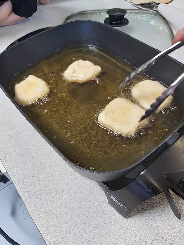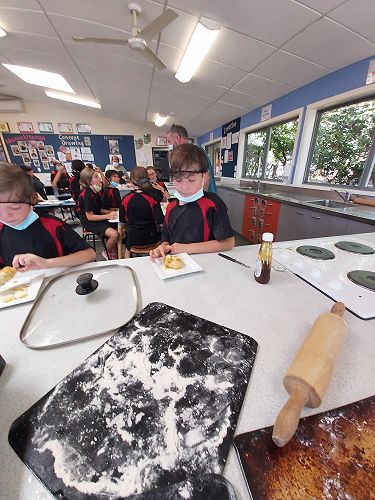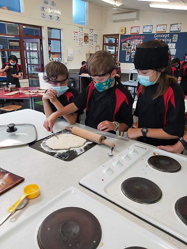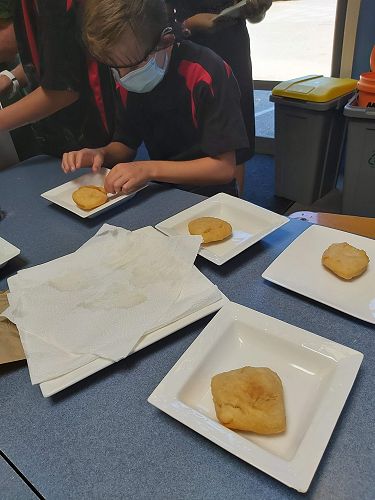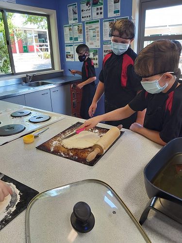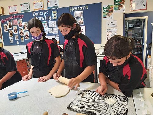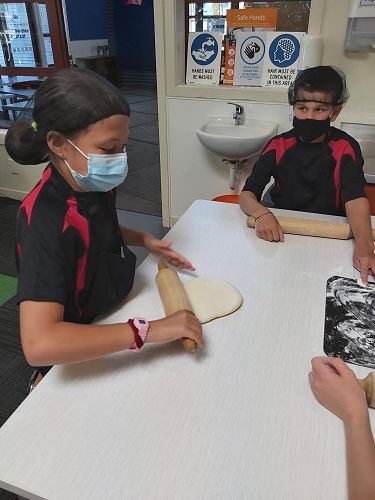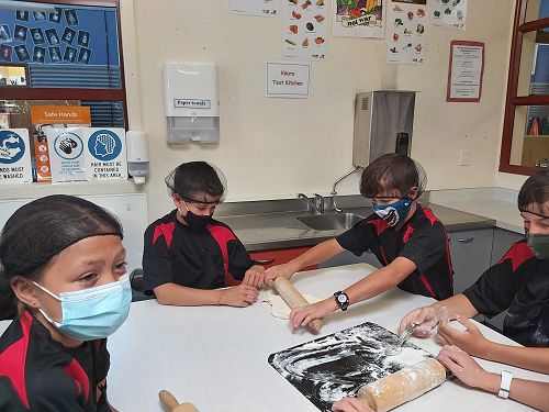 Room 23 we were lucky enough to go into the Foods Room to make some Maori bread. Most people said it was delicious. We started with some bread dough and some flour. We grabbed a cooking tray and put the flour on and put the dough on. Next then we grabbed a rolling pin and rolled it out to 1cm wide and then chopped it into 14 pieces. Whaea Jo and Mrs Lee deep fried them, after a karakia we ate them, yum yum yum. Some people took some home to share with their whanau.