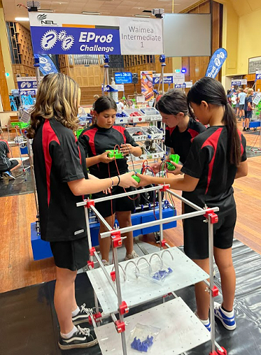 Days before the EPro8 competition Arden, Neviah, Linda and Anahera from Room 18 were chosen to represent the school in the EPro 8 engineering competition.