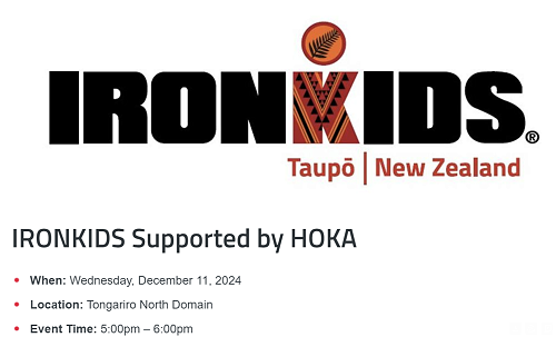 The Ironman kids fun run will happen next Wednesday 11th December between 5pm and 6pm at the Tongariro North Domain.