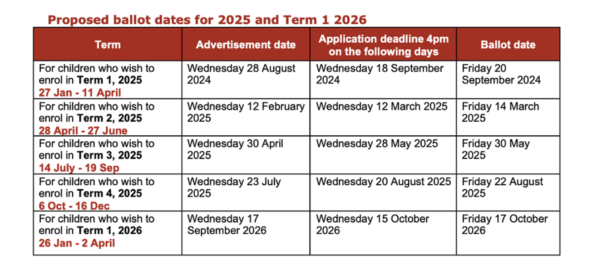 Out of zone ballot dates for this year are as shown below: