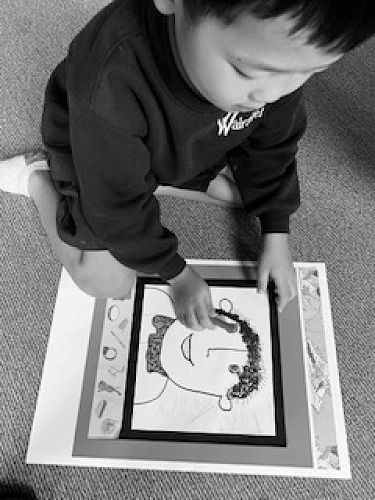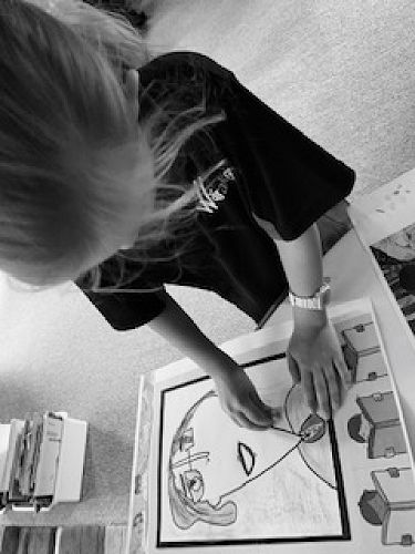 We looked at the - head shape - hair - which way the eyes looked - mouth shape - details on the neck scarves.