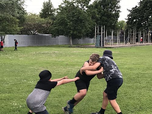 Most Wednesdays at 'Big Play' a group of fun-loving students meet to play bullrush. The weekly game is supervised by a staff member. As long as those playing have a change of top they are allowed to play, whether they are big or small. It is a highlight for many during the week at school.