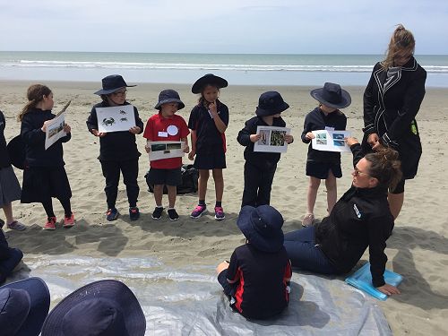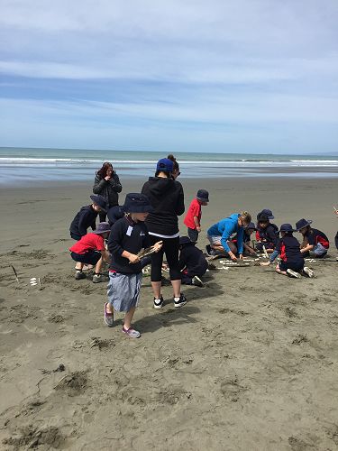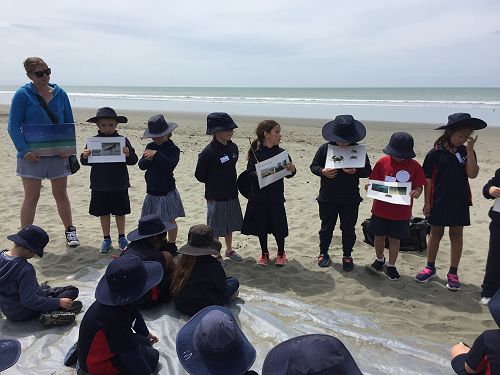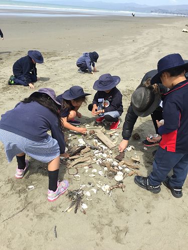 What's on the beach? What gets washed up and what shouldn't be there? Patiki and Inaka, with staff and parents, headed to North New Brighton to find out