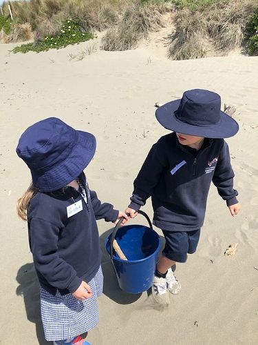 The highlight for all was being set free to wander along the sand looking for treasures. Together we collected a myriad of shells, drift wood, seaweed and the like. We also kept a special eye out for 'microplastics' which as the tamariki all discovered, are extremely damaging to animal and bird life.