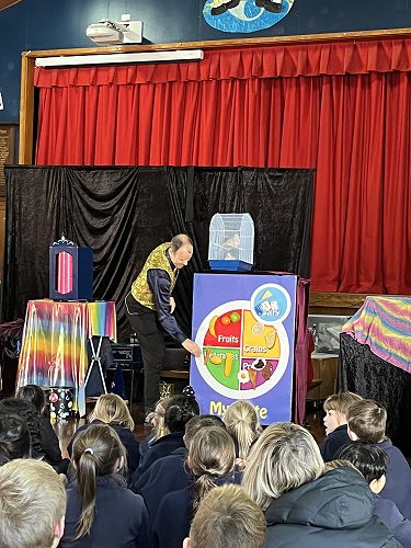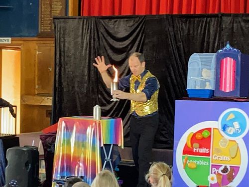 On Thursday the whole school enjoyed a magnificent magic show while learning about the importance of having a health diet.