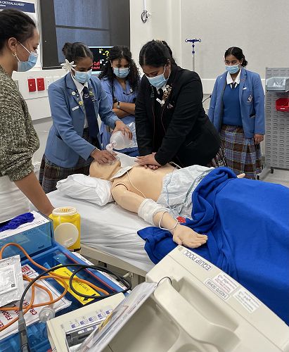 The programme started with the Waitaki Girls' High School students joining the Queens High School students in the whānau room to meet the Pasifika health professionals who would be taking them through the various departments. The students started in the Children's Ward, then it was on toMidwifery, then through Surgery and Oncology before taking part in a Clinical Simulation with a very life like mannequin. The students were all carefully prepared and briefed on their roles for the simulation by the team and then the mannequin went into a cardiac arrest, and then it was all go. It was very humbling to be a part of this exercise, as it became very apparent all of the different roles and responsibilities so many people have every hour of every day within our health system.