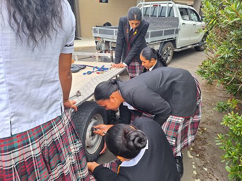 Year 12 Physics recently had the opportunity to put the formula Torque = Force x Distance into practice by safely changing a tyre and using ratchet tie-downs.
