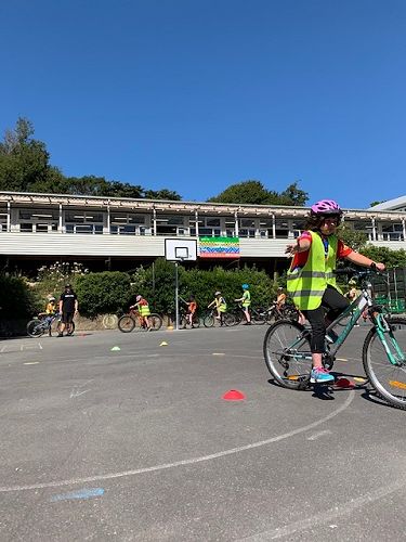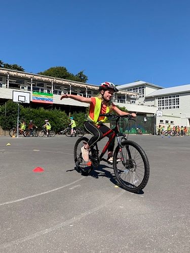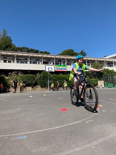 Biking with Bike School was a load of fun and I learnt a lot of things. It was fun to bring my bike to school. The red light game was fun. It felt slightly dangerous but still fun - Mae
