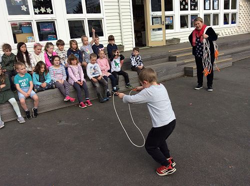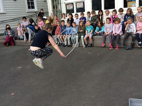 We have brought out the skipping ropes and the children are enjoying learning how to skip with ropes. We have a wide range of abilities, with some children showing amazing skills, and if it had been a Commonwealth games event we would have had some real contenders. There were a lot of children who had not skipped with a rope before who found the initial activity rather daunting. However with a demonstration from an enthusiastic teacher and some very clever children they picked up the basic idea. They then were able to practice simple steps jumping over the rope. We will be building up their skills over the rest of the term, making the most of this fabulous Spring weather to get out get fit and get skipping.