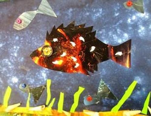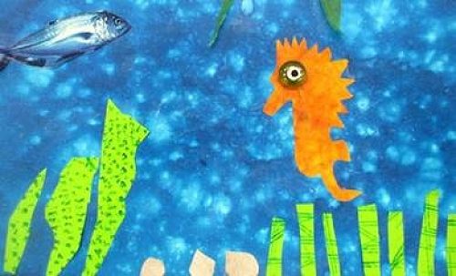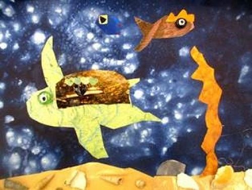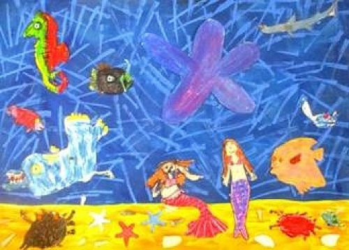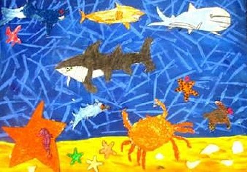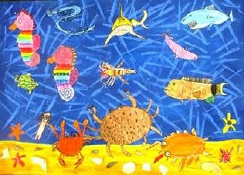 With our term topic being The Rocky Shore the workshops we chose were all ocean related. 'View from a submarine' 'Ocean mural' 'collage fish' and 'on a marbled seabed'.