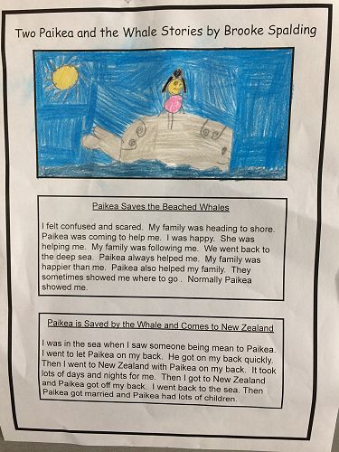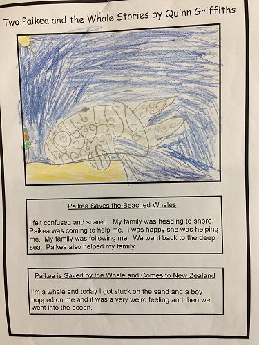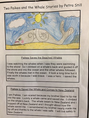 As part of Reading, the class listened to two versions of the Paikea and the Whale legend. Using description and action verbs, they retold the two stories in their own words as part of Writing.