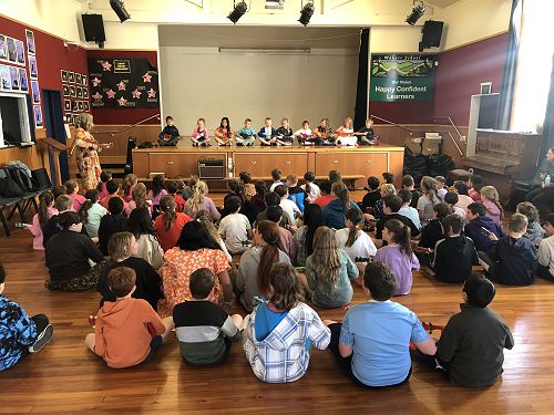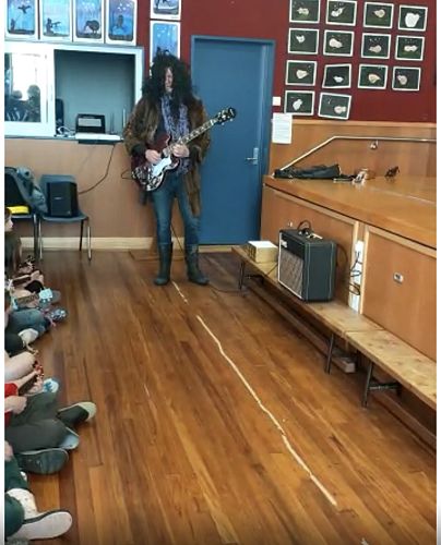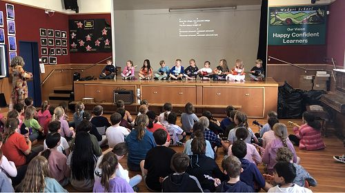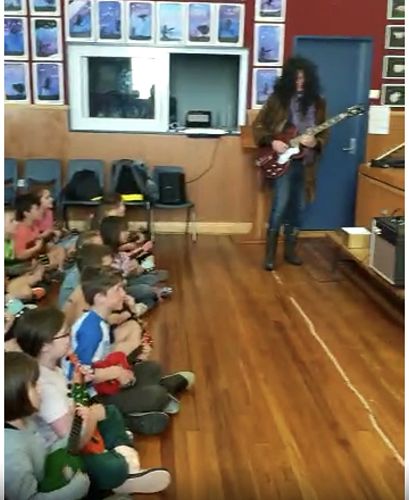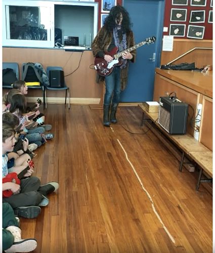 The Ukulele Jam was really fun. The juniors, middles and Slash came when Mr Waddell went to do a very urgent "secret job". Before this, the Nukes came to school. We played a couple of songs with them and they helped us with new techniques. After that, we showed the whole school our songs. Part way through our jam the juniors came. We played the songs they're learning and then the famous Slash came in when Mr Waddell left for the "top secret emergency". We played his top song "Sweet Child of Mine". He left after that and Mr Waddell came back. It was really fun. We were singing famous Sweet Child of Mine, I'm Yours, Overpass Graffiti and much more. My favourite part was when the juniors came because they were learning too.