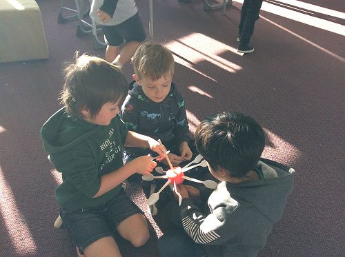 The Room 1,2 and 3 hub were lucky enough to have Pip come into our class with a variety of materials for the children to create their own Water Wheels. They were given, plastic spoons, ice-block sticks, straws, foam and rods to make their own Water Wheels. The children were left to their own devices to create their own inventions. They were then able to test the Water Wheels under the hose to see how they worked. Most of the children then decided how they could improve their initial models and went on to creative a more effective design. All of the children enjoyed the morning immensely and worked well together coming up with the most effective Water Wheels for the task. A fun morning for the entire Hub.