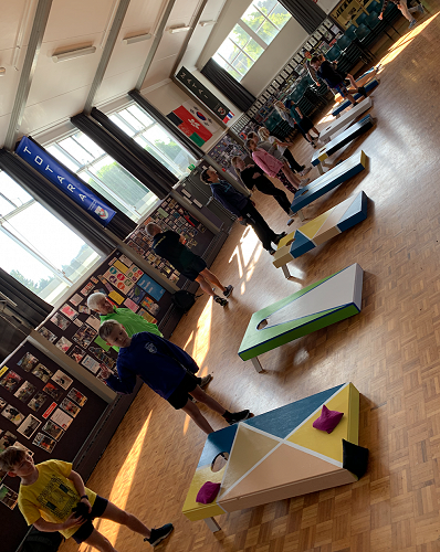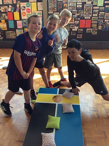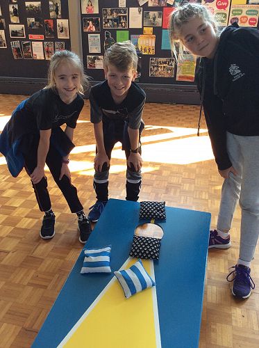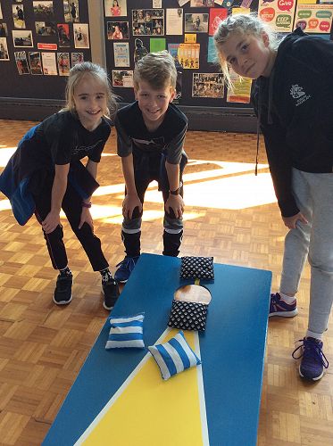 "I loved having a go at corn hole because it was fun throwing the beanbag in the hole. I got it in the hole about four times."