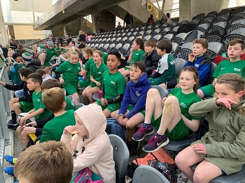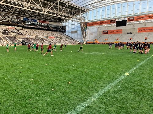 On the 19th of June a whole lot of kids from the Middle and Senior Syndicates went to The Ripper Rugby Tournament at the Forsyth Barr Stadium. We had a lot of fun, it was pretty cold but we got used to it. We played five games and then we had the semi-finals and then the finals. We were very tired at the end but it was worth it. We played warm-up games with our parent helpers.