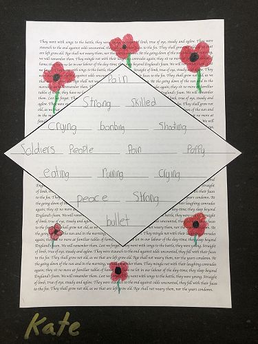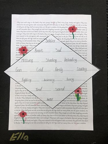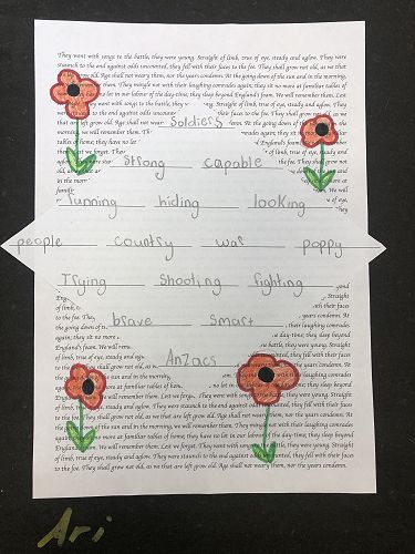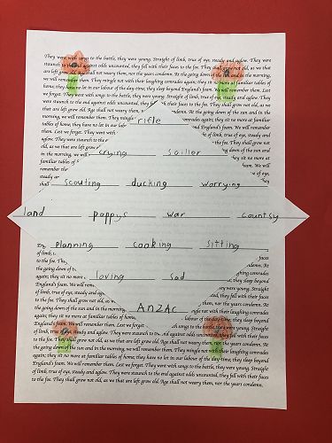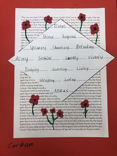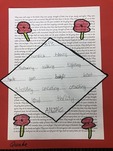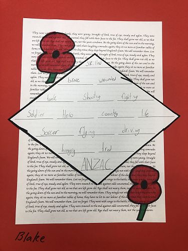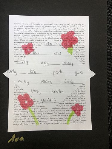 To remember ANZAC day for 2022, children in the Room 6/7 hub created powerful ANZAC Diamante poems.