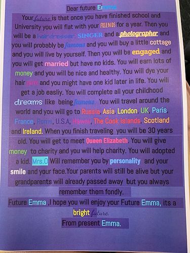 The children then used an aging booth to take photos of what they might look like in the future. Here are a few finished pieces of writing, and the rest will be shared via Seesaw once they are done over the next week or so. Enjoy reading about what our superstars have planned for their bright futures.