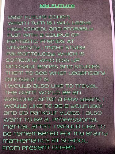The Senior Hub children have been writing about their past life stories, what they're like now (where they wrote CV's) and then looking to their futures. What will they be doing in 20 years? Did they chose to study when they left school? What career did they choose to pursue? What is their family like as an adult? What do they chose to do in their spare time?