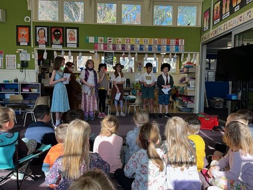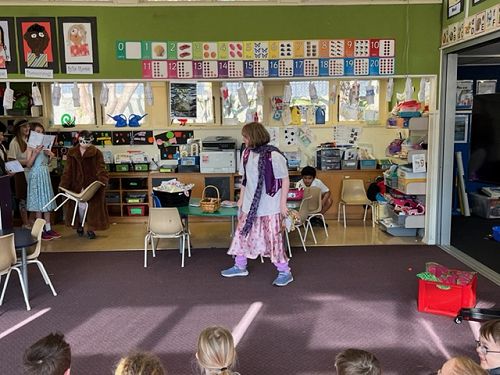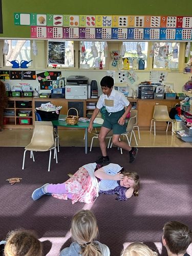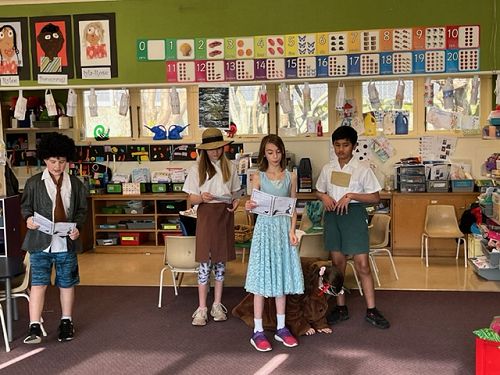 The drama group has been busy practicing Jack and the Beanstalk. They designed costumes, made props and performed in other classes.