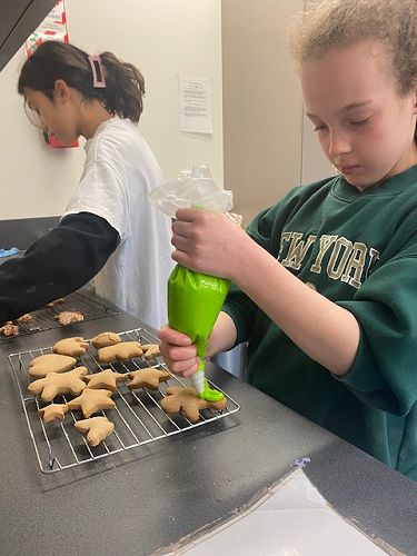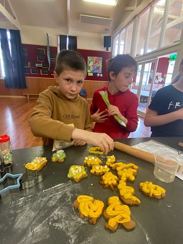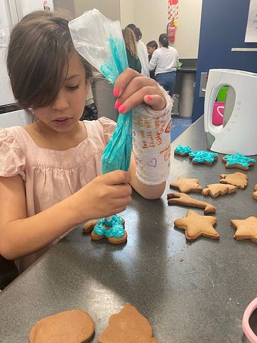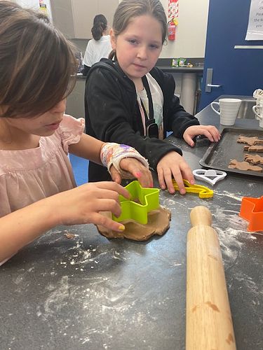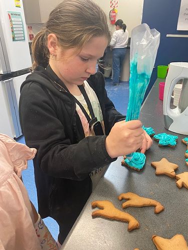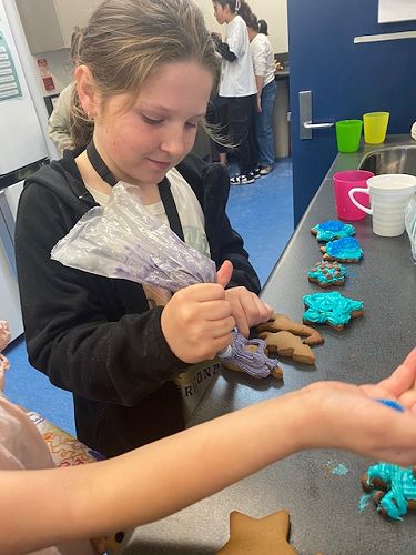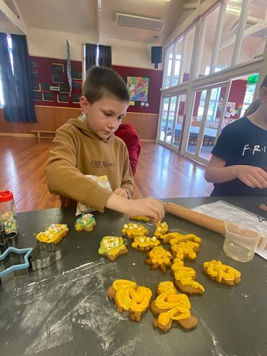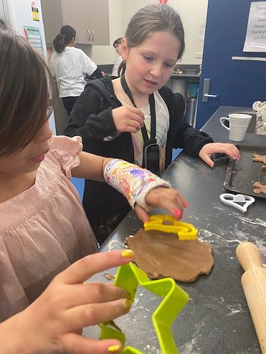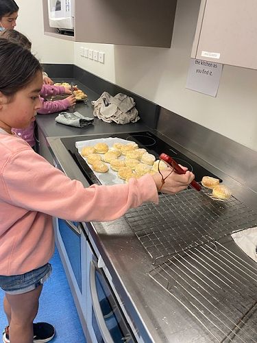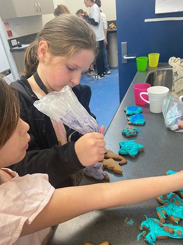 The baking group has been really fun. On the last session we got to mix, roll out, cut then decorate the biscuits. We could express ourselves this way. We made pizza scrolls, lemonade scones, gingerbread men and banana chocolate chip muffins. I liked how we all took turns, and it was even and fair. Melissa and Andrea were really nice and kind baking with us. Sophie S