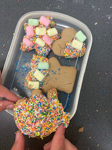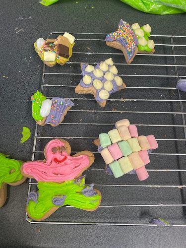 I loved that Melissa and Andrea have been teaching us how to bake. My favourite thing to make was the gingerbread men that we got to roll out, cut into shapes and then decorate. To decorate we used icing, sprinkles, mini marshmallows, white and milk chocolate chips. I loved it all. Cohen