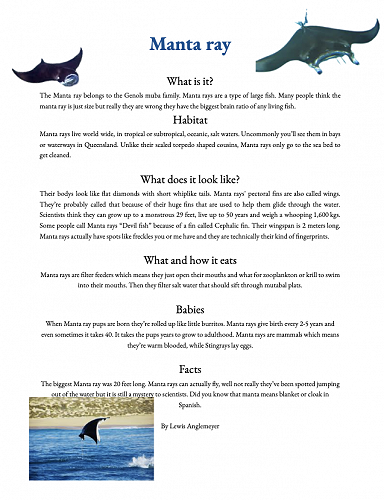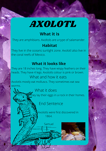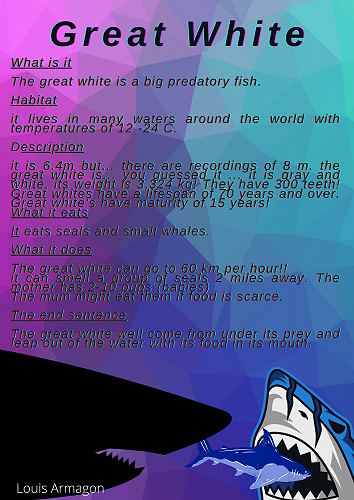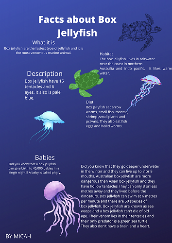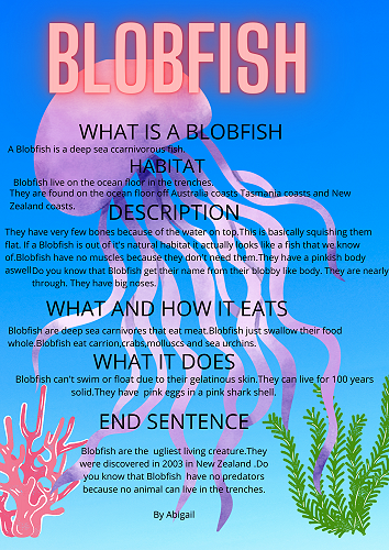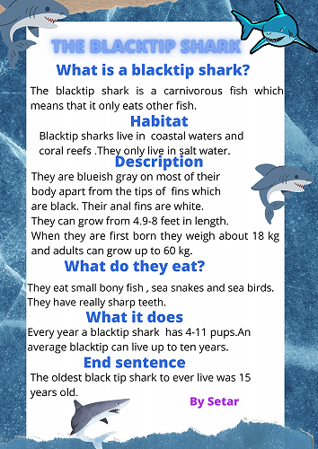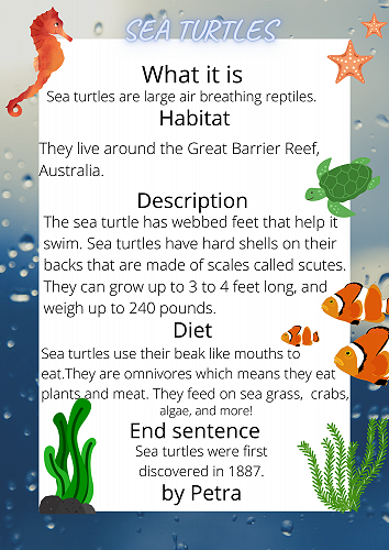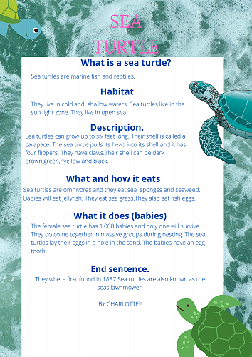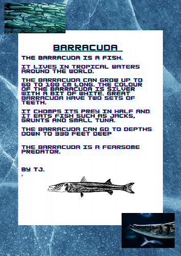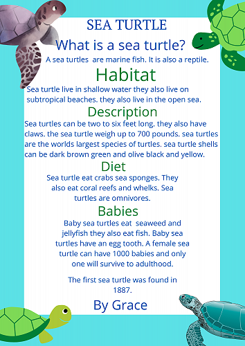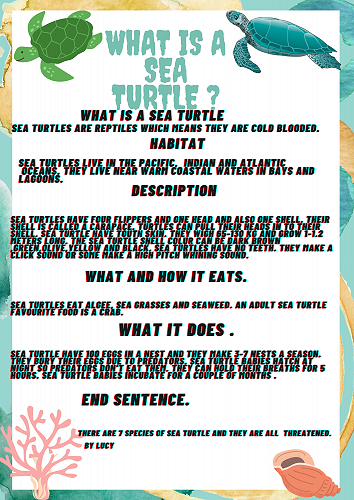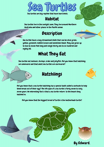 We have all worked extremely hard researching a sea creature of our choice. We learnt how to organise our information into a correct report structure. Next we published our reports using Canva.