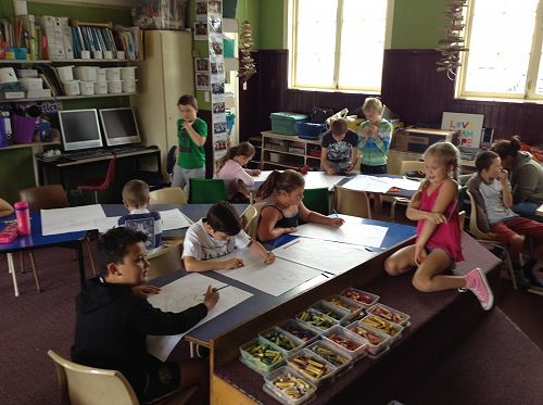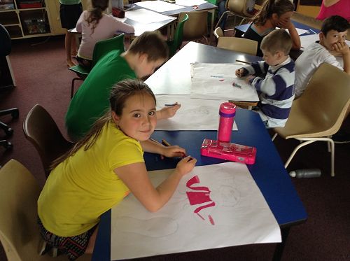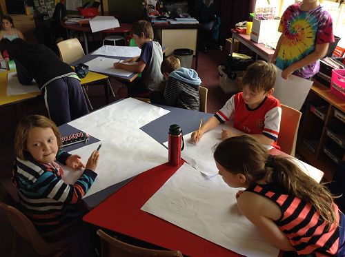"Room 2 and 3 have been making people that have been falling down. It is very amazing. We traced over our feet and hands with pencil and we drew the body and the head. After that we used pastel to colour it in it will probably take until Wednesday."