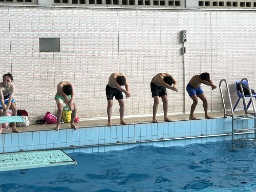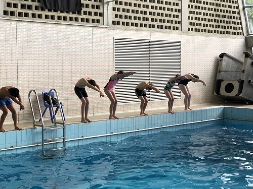 In swimming I think it is going great. We all need to work on diving off the block and being confident doing this. I think we need to work on endurance while swimming also. One particular thing that I need to work on is a dive off the big diving boards. We all need to work on a nice entry into the water. When we are swimming we all need to work on having our head glued onto our arm and not look at the roof in freestyle. By Maia
