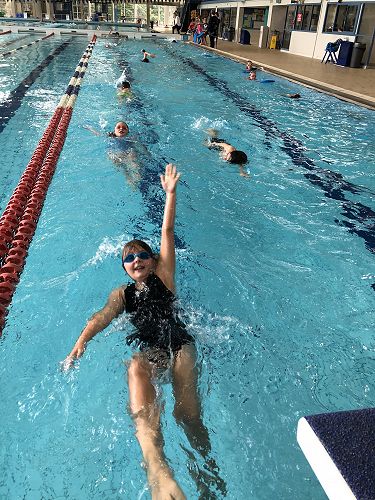 For swimming we've been going to Moana Pool. Today we did snorkeling. First we practiced getting water out of our snorkels then we took our flippers off and tried to put them on under water. Then we swam back and did freestyle. I think I need to work on not going too deep and getting water in my snorkel. By Oliver