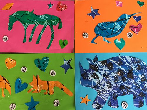 The children started with simple rubbings of coins, and stamps and John explained the printing process. Then the fun began and the children selected an assortment of animal silhouettes which they copied onto the back of some coloured paper. They then added texture with white and black paint using ruler edges over the images. The animals were cut out and glued to coloured sheets. The end results were fabulous. All of the children enjoyed their trip and created some amazing art work. A big thank you to all the amazing Parents who came along and gave their time and support. Trips like these would not be possible without you.
