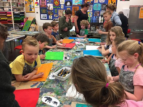 The children in Room 4 were lucky enough to visit the Dunedin Art Gallery last Tuesday, while we were there we got to explore a number of different galleries looking at a selection of paintings and prints. The children were encouraged to describe what they saw and how the paintings made them feel. They all noticed that the paintings and prints with bright bold colours were the ones that made them feel happy. The paintings with soft dull colours, made them feel sad. They then moved on to the gallery with the animal paintings and prints and they were encouraged to spot and talk about the differences of the two mediums. All of the clever children of Room 4 were able to distinguish the prints, as they had only one or two colours and not as detailed as the paintings they were comparing them too. After proving themselves as Art Critics, we moved on to the Art Room where we got to create our own prints.
