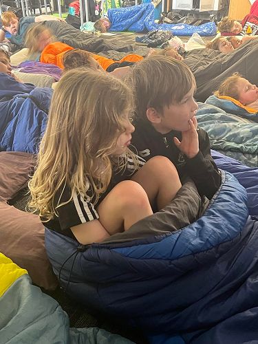 The children, parents and teachers had the best time sleeping in the museum after closing.