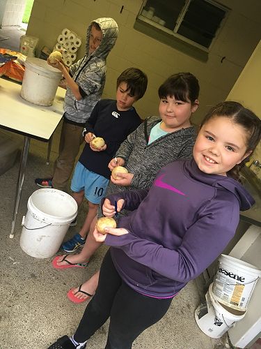 Camp is so much fun. I was bunkroom 1. My favourite part was either the desserts or the water slide. I went down twice. The teachers said that they upgraded the slide. It was so soapy. The food was delicious. For breakfast their was cereal,toast and spaghetti. For lunch we made diy sandwiches and for dinner we had sausages and potatoes and peas and corn and a whole lot of other things. We also went swimming In the lake, it was cold. Hmm...night time oh yeah, other then falling off the bed night time was great. From April.