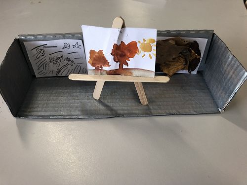 Last Friday Room 10/11 created some mini art galleries. Each gallery needed its own special name exhibiting three special pieces of Autumn art works. The art works were sketches, water colours and collage.