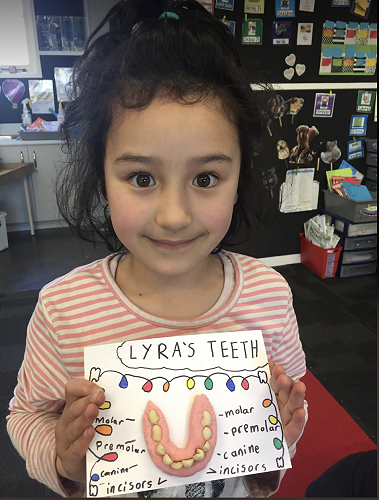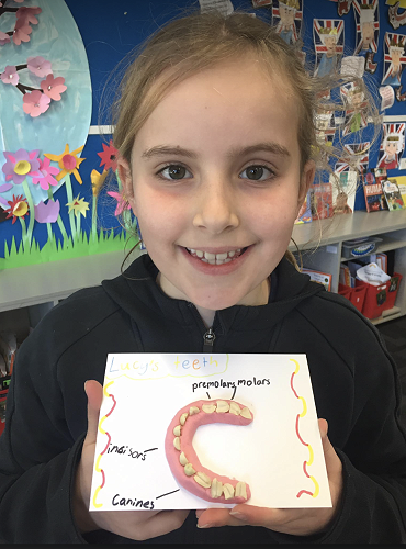 For the first part of this term we have been learning all about teeth. On Monday we learnt about the different types of teeth and the special jobs they do. We found out that there are incisors, canines, premolars and molars. These teeth are shaped to help us cut, slice, tear, and crush and grind food.