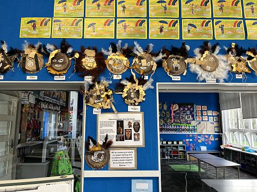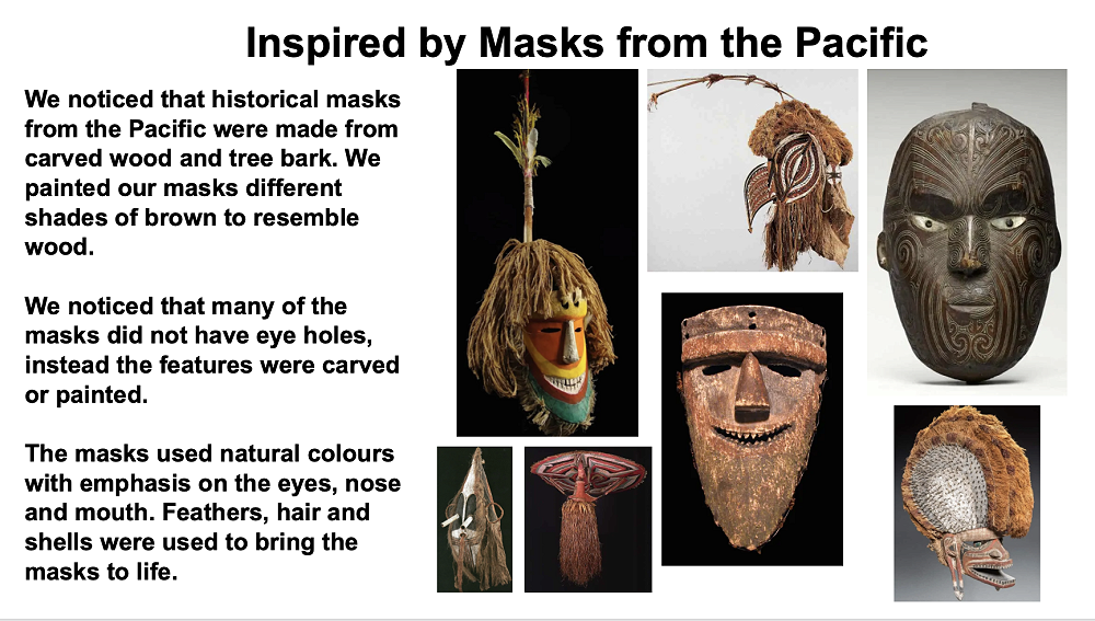 Room 2's masks inspired by the Pacific and Instructional Writing
