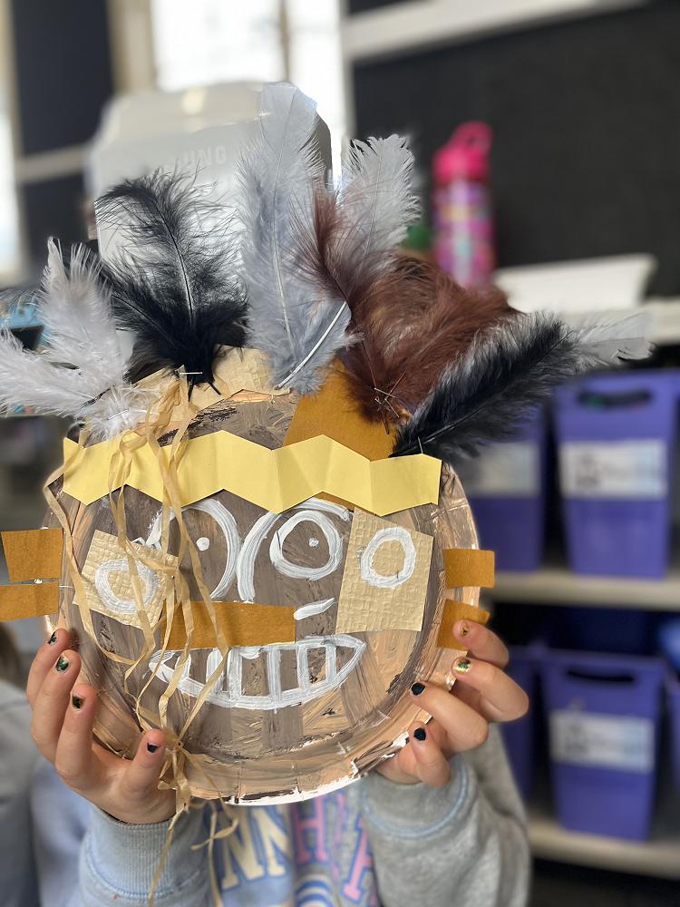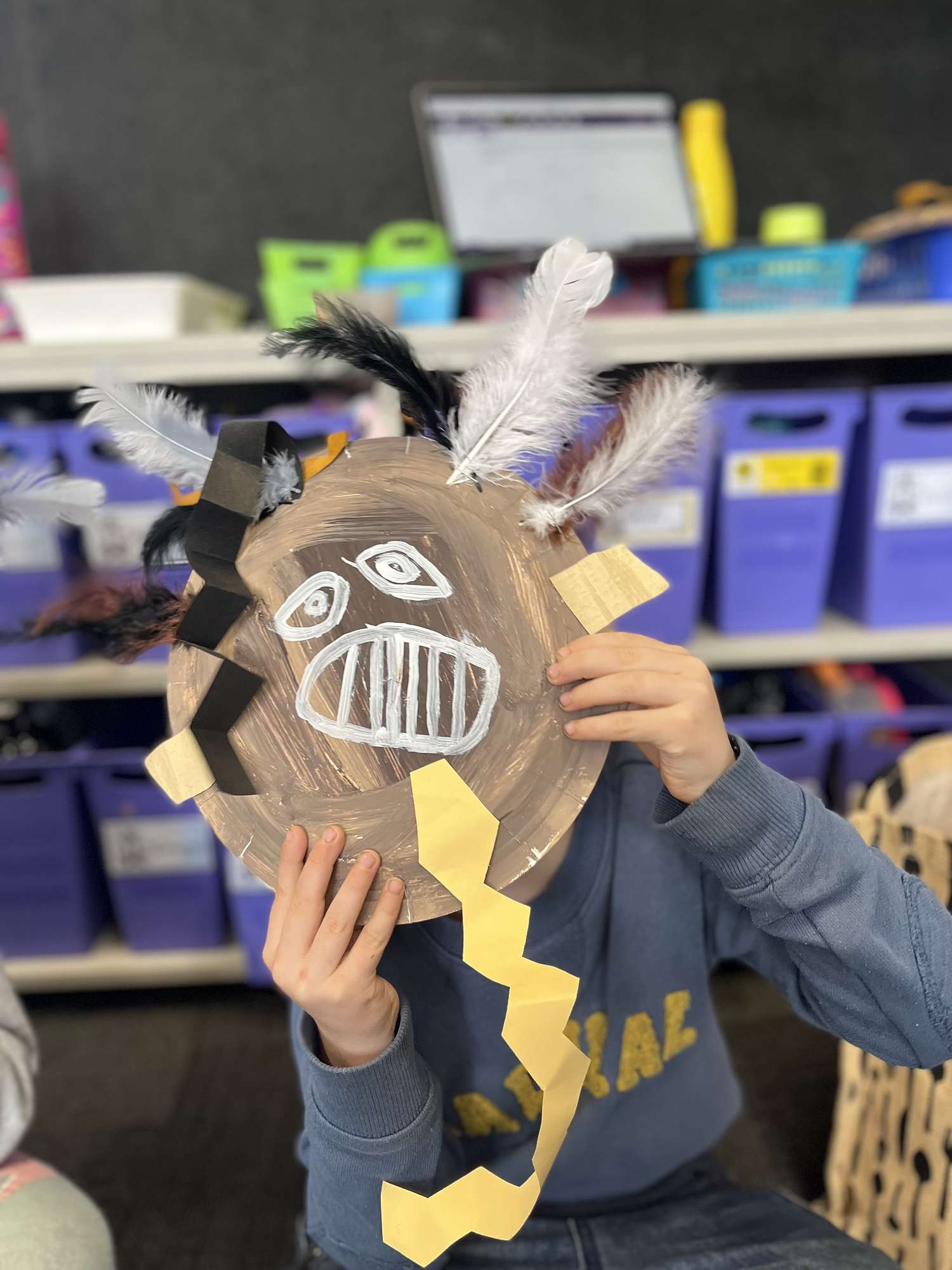 In Room 2 we did some research about historical masks that have come from across the Pacific. We were amazed by the way these masks were created from very little resources! We identified some stand out features of the masks and used this new information as the base for our own creating.
