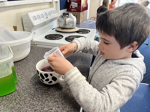 This was a great way to discuss with the tamariki the ingredients and utensils that were needed and the meaning of different language such as 'dissolve'.