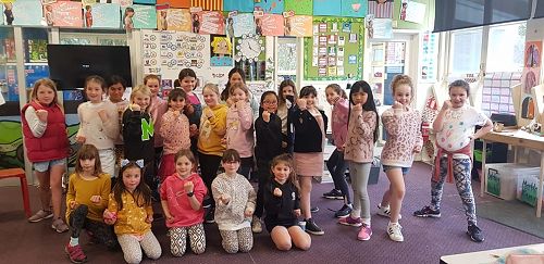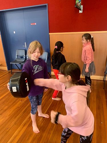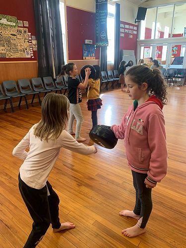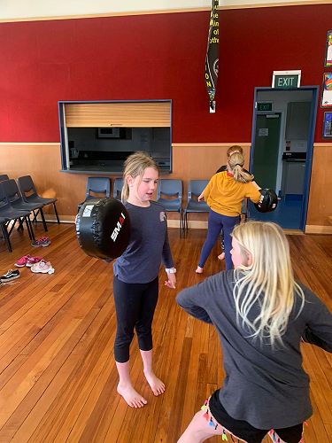 Last week the Year 3 and 4 girls in Hub 12 and 13 did a self defence course. We learnt how to do the self defence stance and punches, blocks and kicks. My favourite punches were the hammer punches. We had partners for the whole day that we could practice our self defence with, my partner was Ari. My favourite part of the whole day was having punch pads to practice with. It looked like all the girls had a lot of fun!