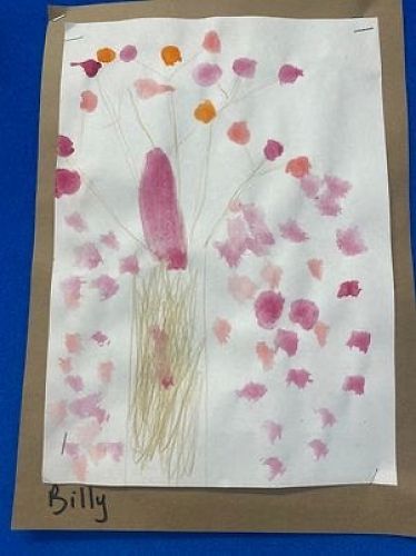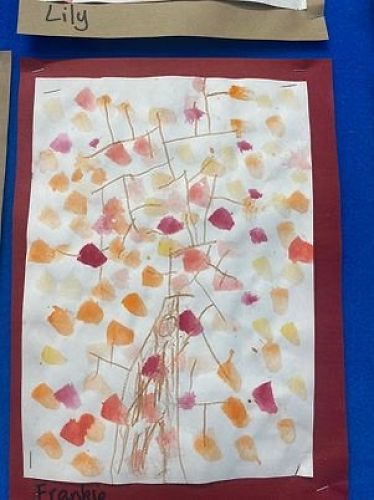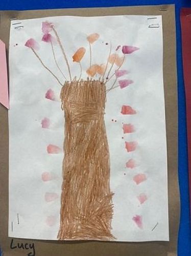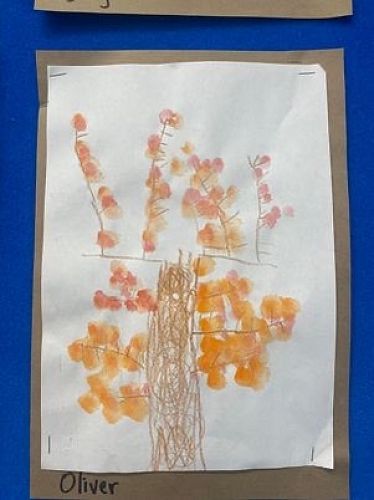 We decided to use water colours to paint the leaves falling down off the tree. We also wrote some diamond poems to go with our art.