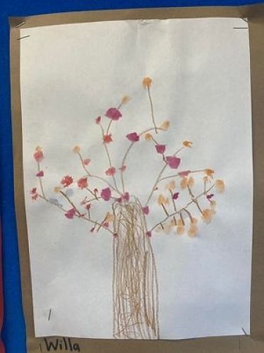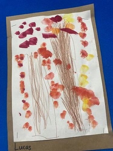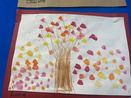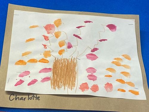 The trees are looking very bare around Wakari School. The children in Hub 1,2,3 are often found at playtime and lunch time picking up the fallen leaves and discussing their colour, shape and how they feel. We decided to use this experience the children enjoy and paint the empty looking trees.