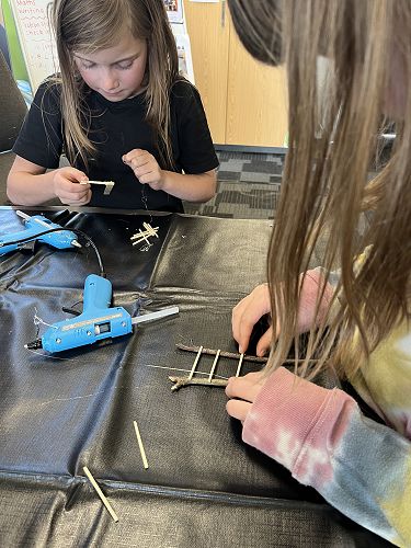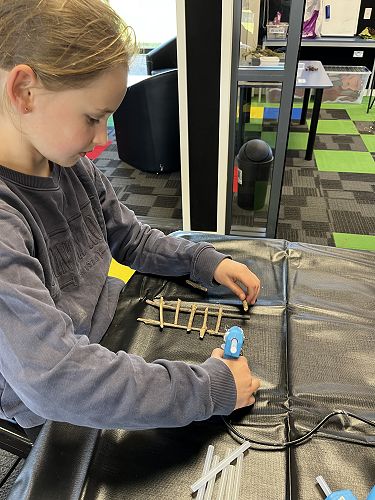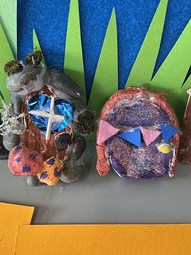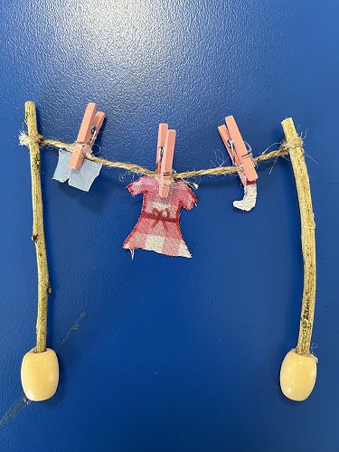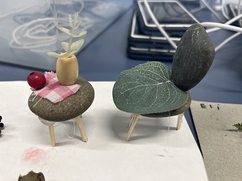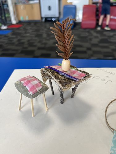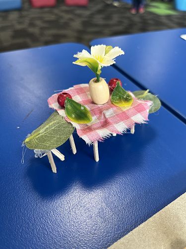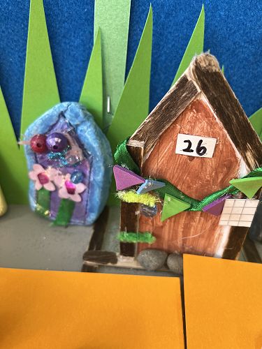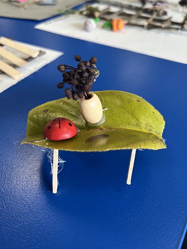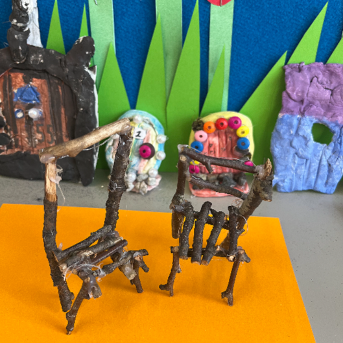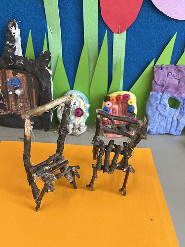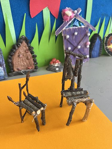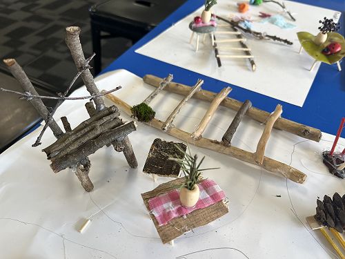 With a project partner the children have opted into mini workshops on how to make items for their fairy/wizard gardens and habitats. These workshops have so far included washing lines, tables and chairs, plants and vegetables, ladders and doors.