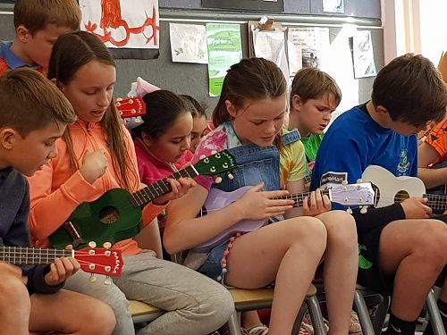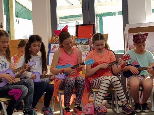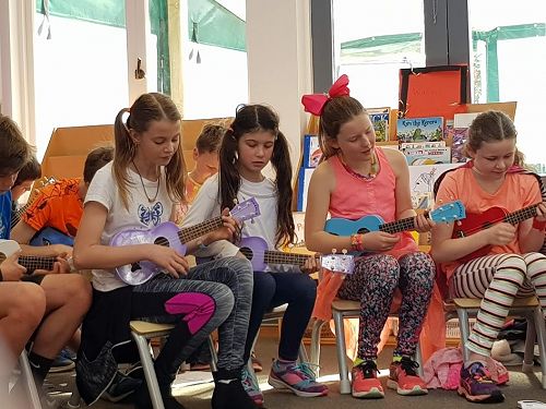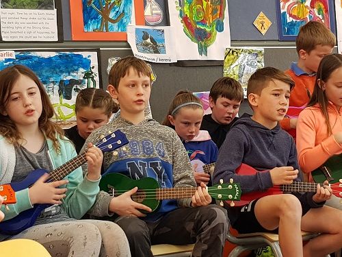 On the 28th of September the Senior uke group went to Wakari Kindy and played lots of songs. When we walked in there were lots of small chairs for us to sit on. They looked so excited for us to play on the ukes. They danced and sang to the songs, (even Mr Smith danced). We think they absolutely loved it. After we played the ukes, they gave us a lovely morning tea with chips, popcorn, sandwiches and lots of fruit. We all had lots of fun.