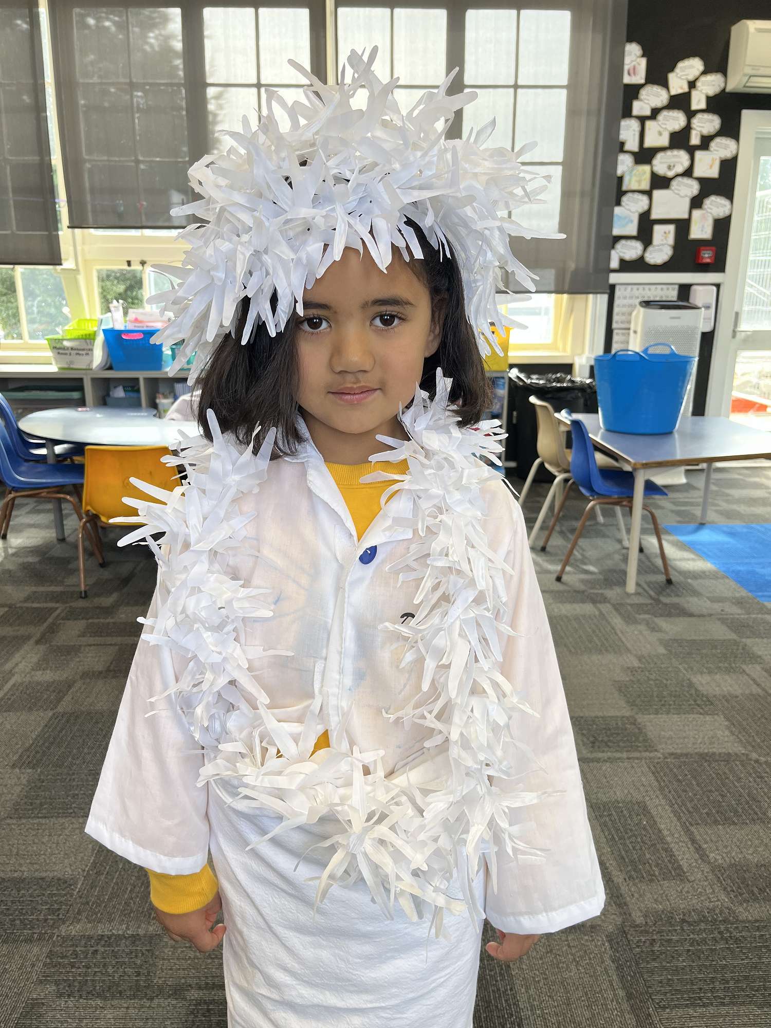 The next stop on our cultural journey through Sāmoa was looking at a celebration. We read stories and watched videos of a significant celebration called White Sunday. White Sunday is the celebration of children which takes place on the second Sunday of October. Children and their families sing songs, dance, eat delicious food and wear white! We enjoyed trying on a white lava lava and shirt and talking about how the food is cooked in an umu (above ground oven).