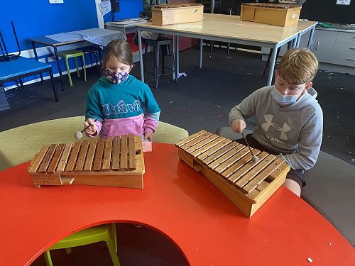 Percussion - we did percussion activities with Mrs Ollerenshaw. First we had to pass a noisy instrument around without making any noise. We also made some music with some instruments that you shake. We did singing with Miss DeCourcy. We sang songs about Wakari School. My favourite song that we sang was Hey Baby - Lilly Keith