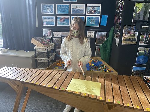 Marimbas - I learn marimba with Mrs Fitzgerald. We did a song called Boris the Bassman. At first it might be a bit confusing until you get the hang of it. It will be really easy if you listen to Mrs Fitzgerald. Marimba is on Fridays while the other kids are doing ukulele with the other teachers. There are a few songs that you can play on the Marimbas. There are smaller marimbas, medium ones and the big Marimbas. They have an echo sound coming out of them when you hit the bars. The medium marimba has a deep sound when you touch the bars. The smaller marimbas have a little high pitch sound when you hit the bars - Briah Daggar