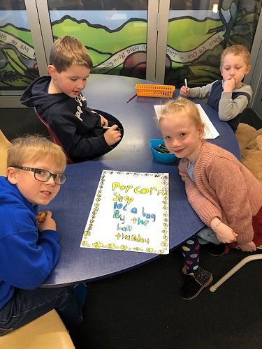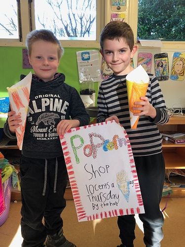 In the Year 2 Hub we had fun with a buddy, designing packaging from an A4 piece of paper. We measured that we can get 8 cups of popcorn from 1/2 a cup of popping corn! Another part of the process has been thinking about advertising. We designed and created posters so everyone will know that the shop in on Thursday outside the hall, and each packet costs is 10 cents (we can practice skip counting in 10's!).