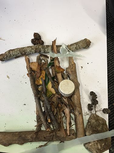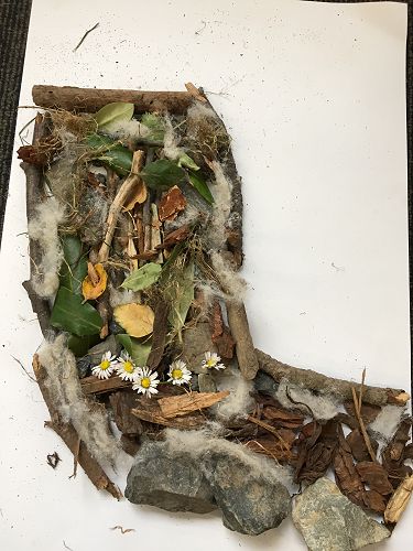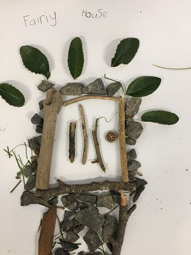 We had to work in groups of 3 or 4. First, we had to go outside and collect bits and pieces from nature which we found on the ground. Next, our task was to create a little fairy door which was no bigger than our hands. We had lots of fun making our doors and were very proud of them.